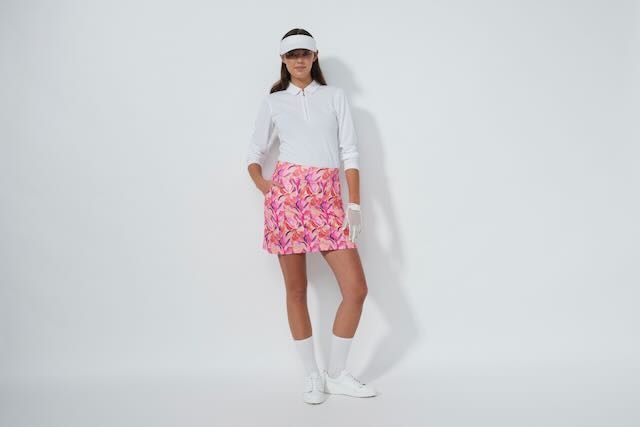 De Daily Sports Sheermotion Skort is een comfortabel en stijlvol golfrokje met een kleurige print in de basiskleuren Radiant Pink en Electric Orange. Dit pull-on model is makkelijk aan te trekken en blijft perfect zitten tijdens je ronde.